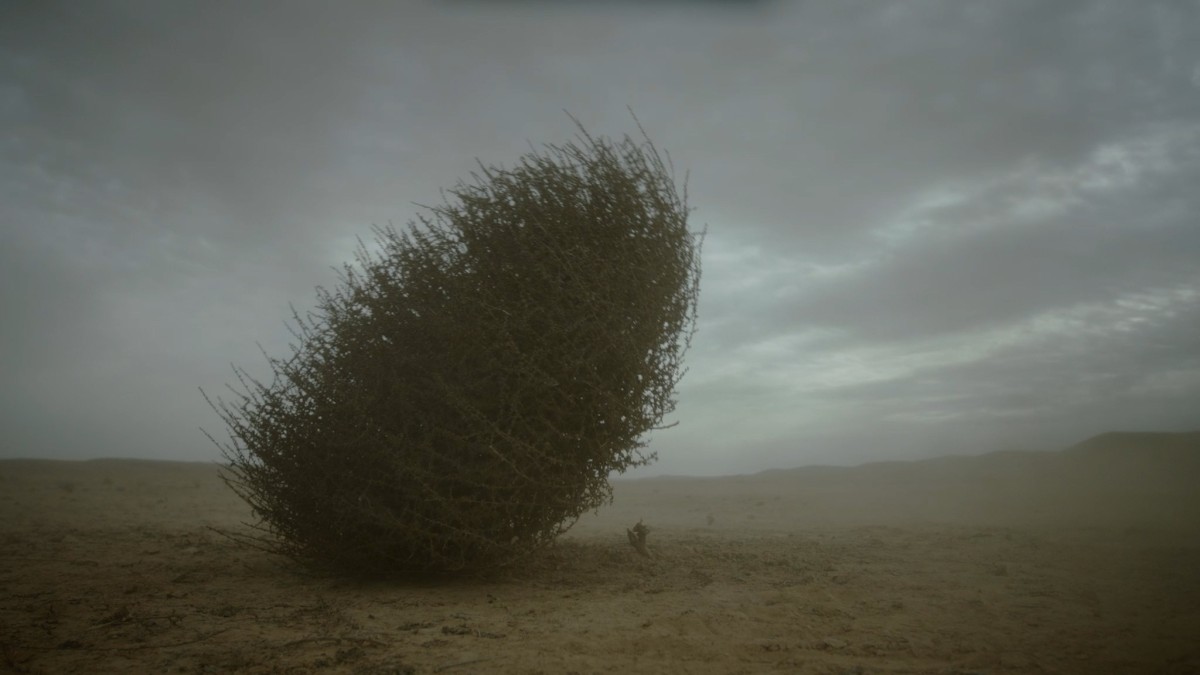 אי שם, איפה שהקילומטרים האינסופיים של חולות מתחברים עם האופק, מחליט להיכנע למאבק נגד הרוח, שיח עגול ויבש. הוא מתנתק מהקרקע ומתחיל להתגלגל לאן שהרוח נושבת. בדרך שלו הוא יפגוש אנשים שהולכים נגד הרוח, ולעיתים אחד נגד השני.